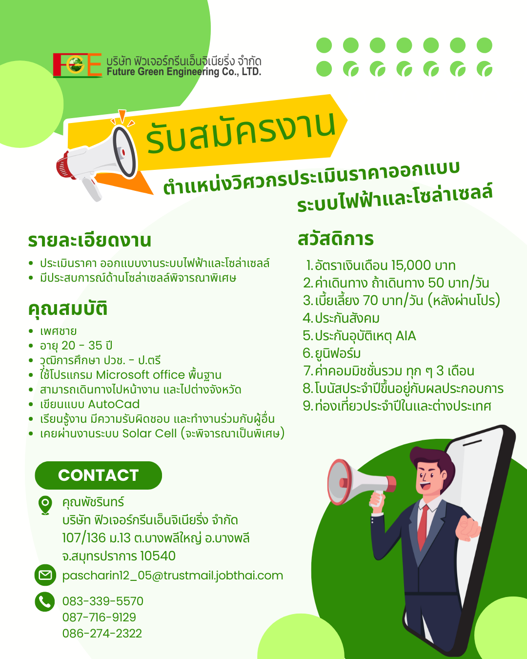 - เคยผ่านงานระบบ Solar Cell (จะพิจารณาเป็นพิเศษ)